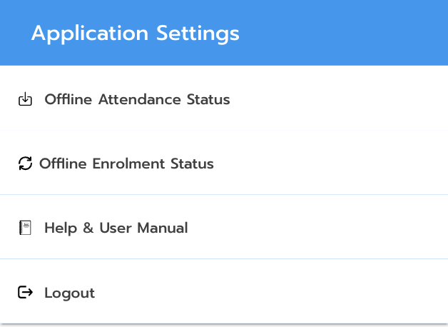 A user can sync attendance data taken in off-line mode to the online database by navigating to the user profile tab and clicking “Attendance Status”.