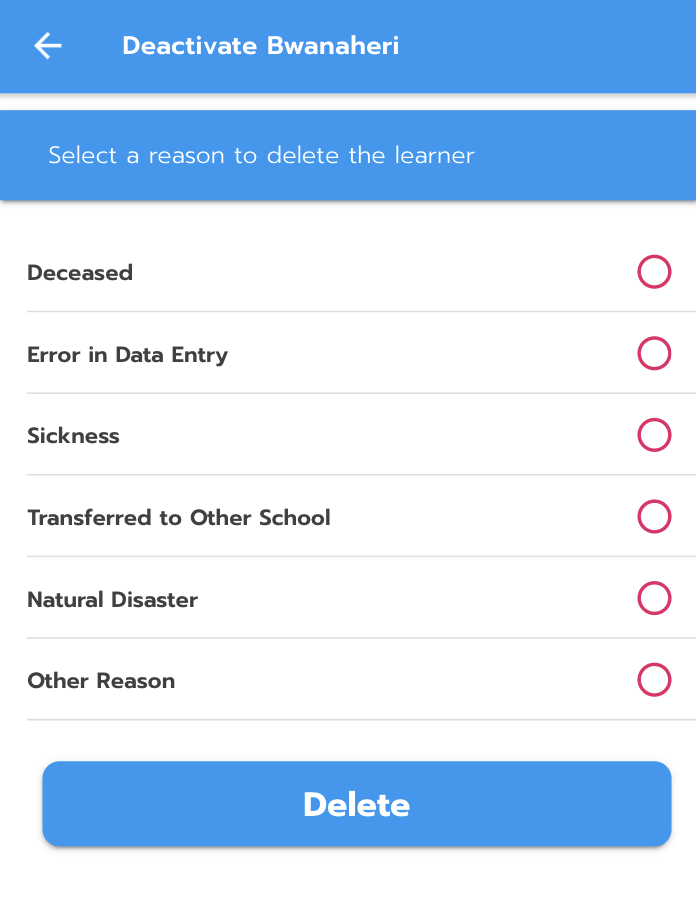 | Status | No | Select the learner's status. Either Not set, Out of School, Newly Enrolled, Never Enrolled or Previously Enrolled |