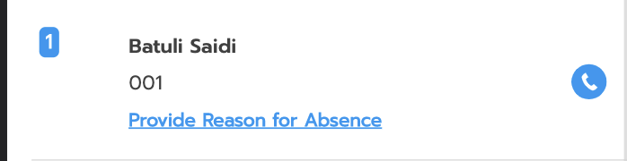 Incase of an emergency or need to follow up on a learner with their guardian, click on the phone icon to place a call.
